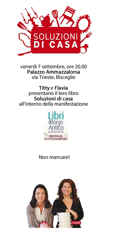 Scrittori, giornalisti, politici, personaggi dello spettacolo e dello sport: tutti autori di successo che si alterneranno nelle piazzette del borgo medievale per presentare le loro ultime fatiche letterarie e confrontarsi con il pubblico presente. Tra questi ci saremo anche noi, protagoniste della giornata di venerdì 7 settembre, per presentare il libro Soluzioni di casa (Vallardi Editore). Una guida utilissima, ricca di suggerimenti e trucchi per chi ha poco tempo da dedicare alle attività domestiche, ma desidera avere un’abitazione personalizzata ed elegante, oltre che pulita, ordinata, funzionale.