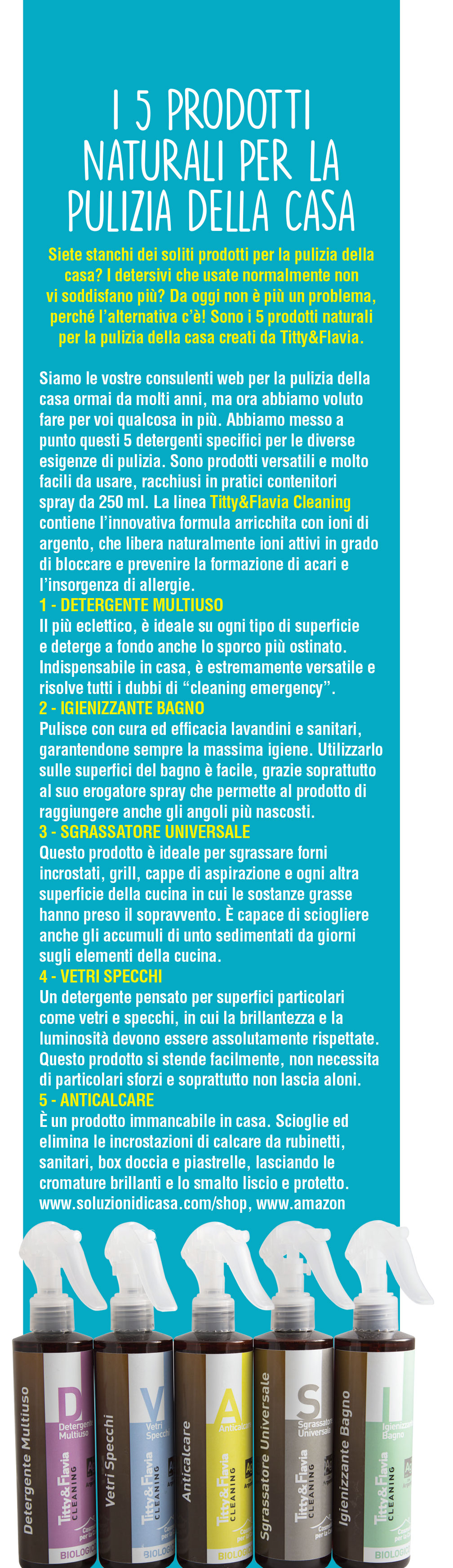 Da oggi non è più un problema, perchè l’alternativa c’è! Sono i 5 prodotti naturali per la pulizia della casa creati da Titty&Flavia!