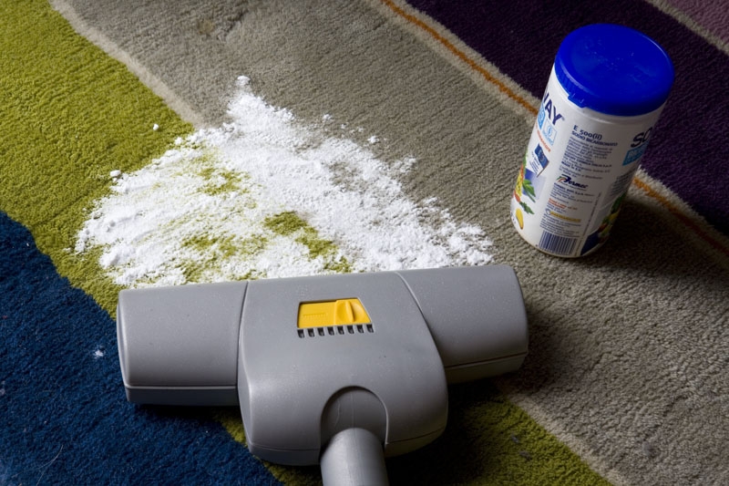 - A volte un tappeto può emanare un odore non proprio gradevole pur non essendo sporco. In questo caso preparate una miscela elimina odori mescolando in una ciotola 1 tazza di borace, 1 tazza di bicarbonato, ½ tazza di amido di mais, 10 gocce di olio essenziale di ginepro e 5 gocce di olio essenziale di cipresso. Lavorate bene con una forchetta finché le polveri non risulteranno ben amalgamate e senza grumi, poi cospargete la miscela sul tappeto e lasciate agire per diverse ore, anche tutta la notte se potete. Rimuovete quindi il tutto con l’aspirapolvere.